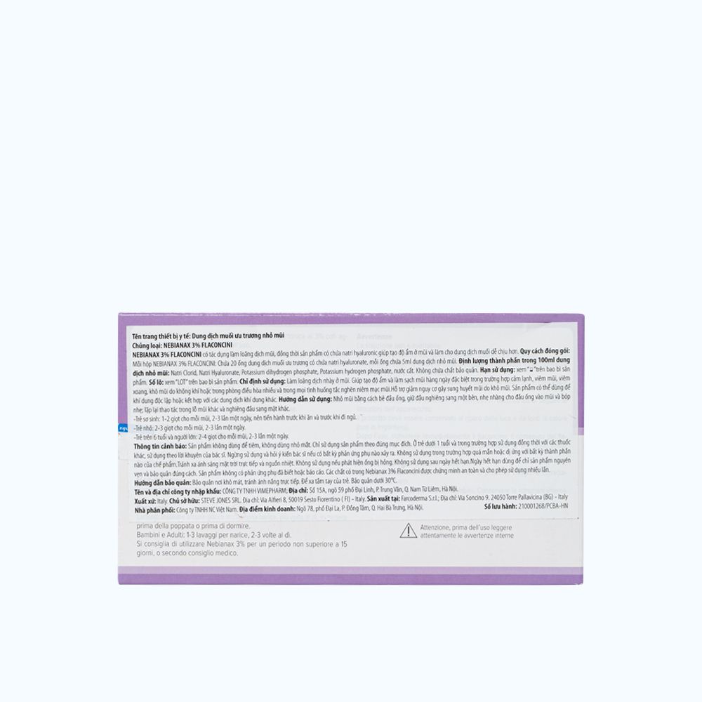 - Ngày hết hạn dùng để chỉ sản phẩm nguyên vẹn và bảo quản đúng cách. Sản phẩm không có phản ứng phụ đã biết hoặc báo cáo. Các chất có trong Nebianax 3% Flaaconcini được chứng minh an toàn và cho phép sử dụng nhiều lần.