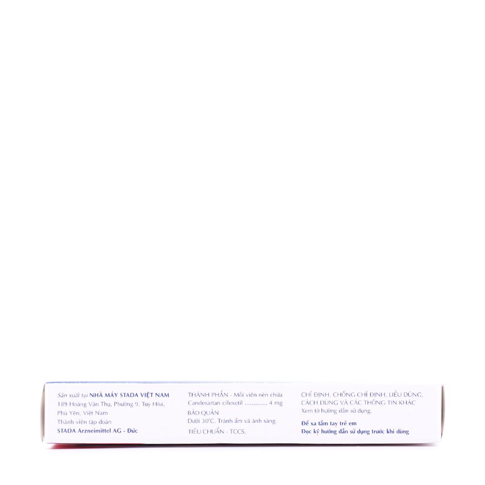 Tác dụng phụTrong điều trị tăng huyết ápTrong các nghiên cứu lâm sàng có kiểm soát, các phản ứng bất lợi là nhẹ và thoáng qua, không liên quan đến liều hoặc tuổi. Tỷ lệ bệnh nhân ngưng điều trị do tác dụng không mong muốn là tương tự nhau giữa candesartan cilexetil (3,1%) và giả dược (3,2%).