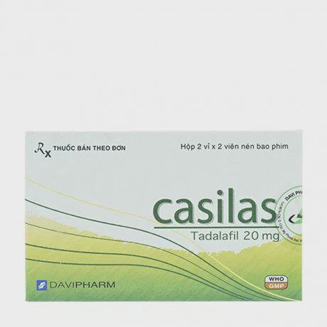 Casilas 20mg là viên nén bao phim được sản xuất bởi Công ty Cổ phần Dược phẩm Đạt Vi Phú (Davipharm), với thành phần chính là Tadalafil, được sử dụng để điều trị rối loạn cương dương ở nam giới trưởng thành.