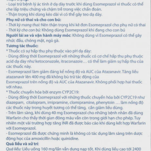- Thời kỳ mang thai: Nên thận trọng khi kê đơn esomeprazol cho phụ nữ có thai.