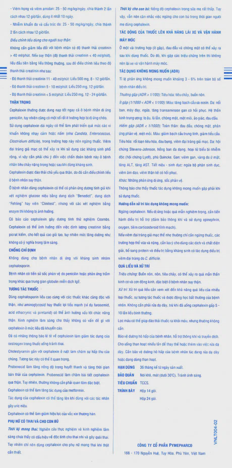 – Giống như với những kháng sinh được đào thải chủ yếu qua thận, khi thận suy, phải giảm liều Cephalexin cho thích hợp.