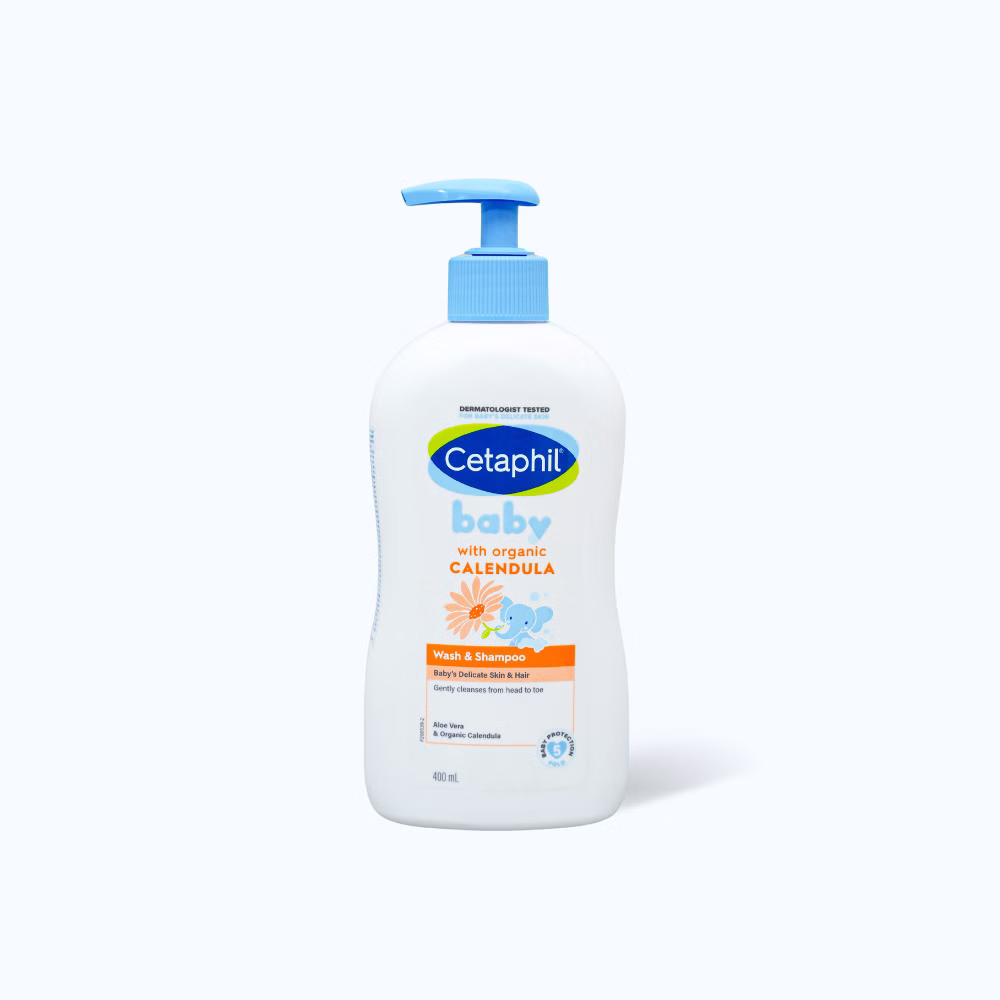 Sữa tắm gội toàn thân Cetaphil Baby 2in1 Organic Calendula dịu nhẹ làm sạch da bé(Chai 400ml)