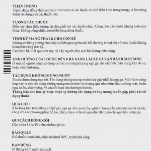 - Ở một số người bệnh sử dụng cetirizin có hiện tượng ngủ gà, do vậy nên thận trọng khi lái xe, hoặc vận hành máy.