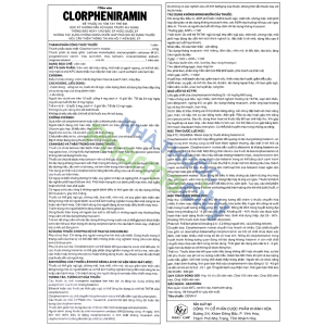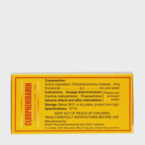 - Hoạt chất: Clorpheniramin maleat 4mg.