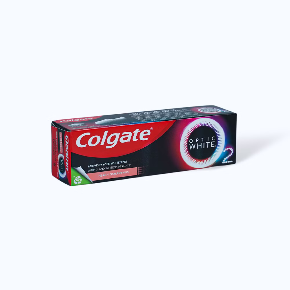 Colgate Optic White O2 Peach Osmanthus là một sản phẩm chăm sóc răng miệng nổi bật với công thức làm trắng răng đột phá. Với công nghệ oxy hoạt tính, kem đánh răng này mang đến trải nghiệm làm sạch và làm trắng răng hiệu quả, đồng thời cung cấp hơi thở thơm mát suốt cả ngày.
