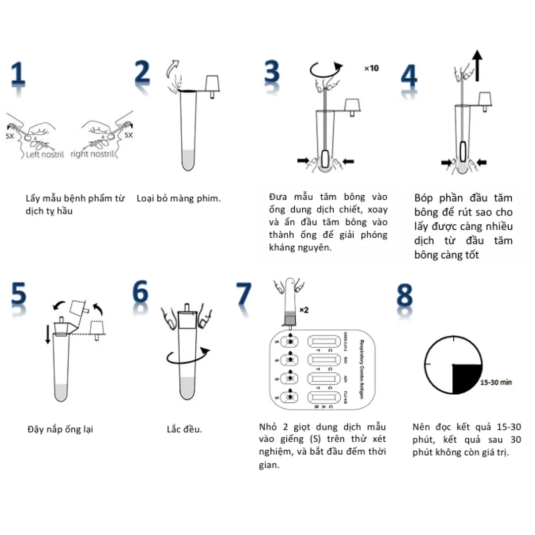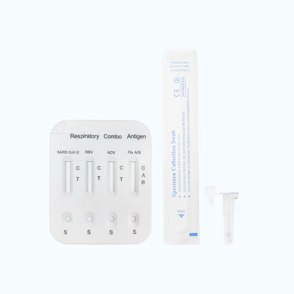 Respiratory Combo Antigen Rapid Test là xét nghiệm miễn dịch dòng chảy bên nhằm mục đích phát hiện và phân biệt định tính đồng thời, nhanh chóng kháng nguyên nucleocapsid trong chẩn đoán in vitro thông qua hội chứng hô hấp cấp tính nặng do coronavirus 2 (SARS-CoV-2), vi rút cúm A, vi rút cúm B, vi rút hợp bào hô hấp (RSV) và Adenovirus (ADV) trực tiếp từ các mẫu bệnh phẩm dịch tỵ hầu được lấy từ các cá nhân bị nghi ngờ nhiễm vi rút đường hô hấp bởi nhà cung cấp dịch vụ chăm sóc sức khỏe, trong vòng bảy ngày đầu tiên kể từ khi các triệu chứng khởi phát.