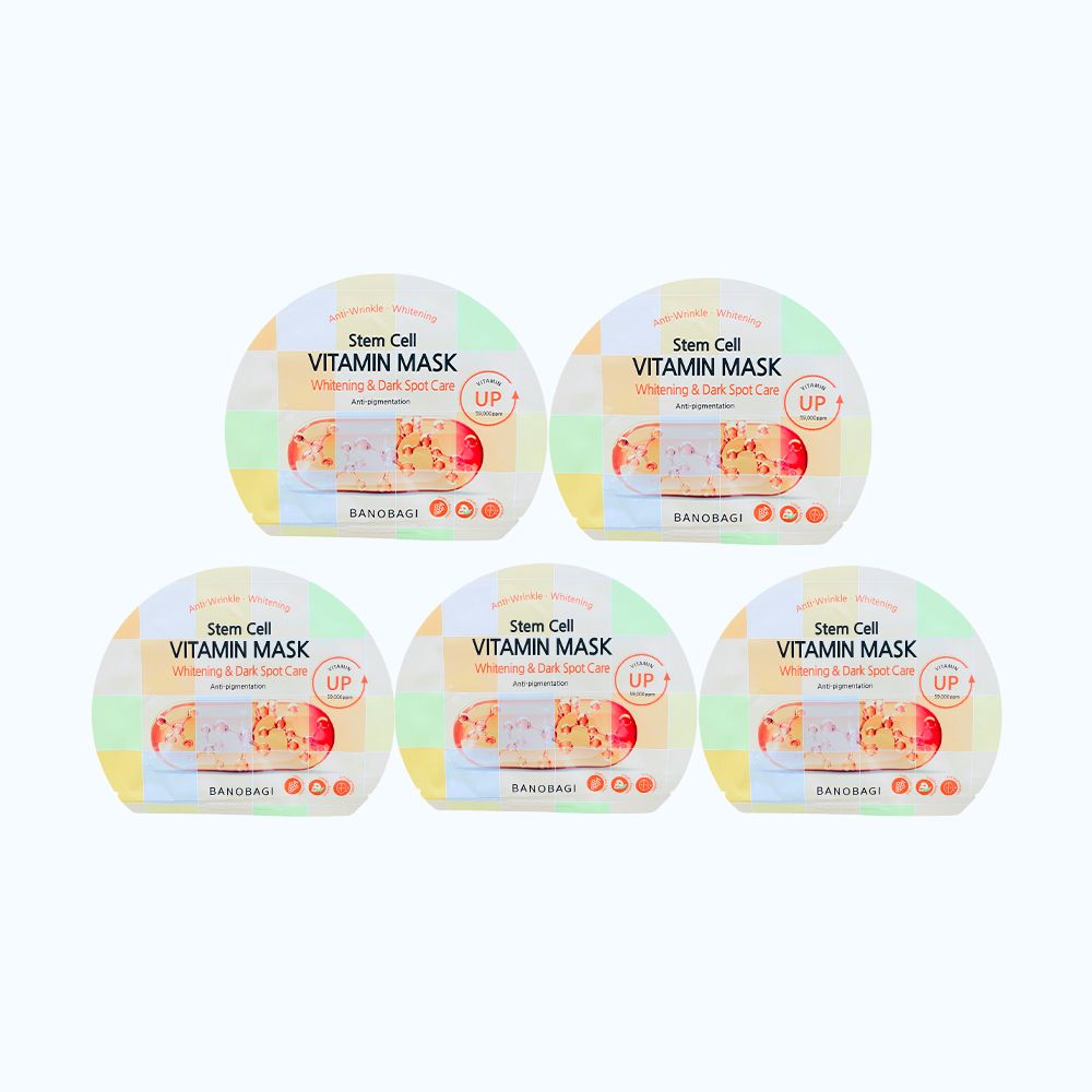 Combo 5 miếng mặt nạ BANOBAGI Stem Cell Whitening & Dark Spot Care dưỡng ẩm, giúp làn da trắng sáng (Miếng 30g) gồm: