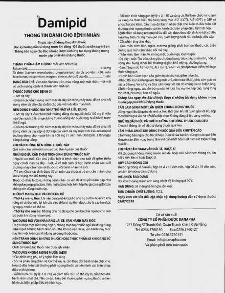 Điều trị loét dạ dày: Liều rebamipid thường dùng cho người lớn là 100 mg (1 viên nén Damipid), 3 lần/ngày bằng đường uống vào buổi sáng, buổi tối và trước khi đi ngủ.