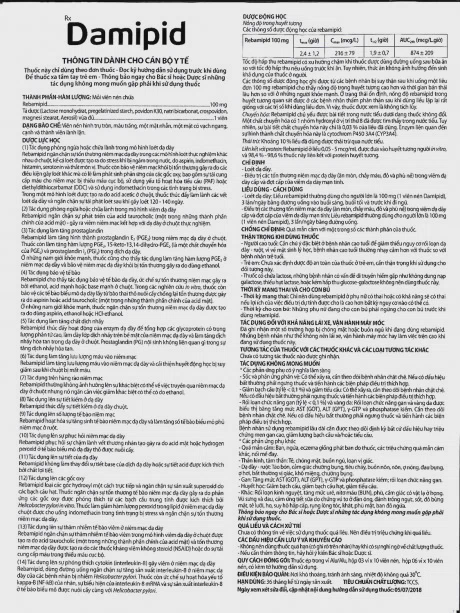 Điều trị các thương tổn niêm mạc dạ dày (ăn mòn, chảy máu, đỏ và phù nề) trong viêm dạ dày cấp và đợt cấp của viêm dạ dày mạn tính: Liều rebamipid thường dùng cho người lớn là 100 mg (1 viên nén Damipid), 3 lần/ngày bằng đường uống.