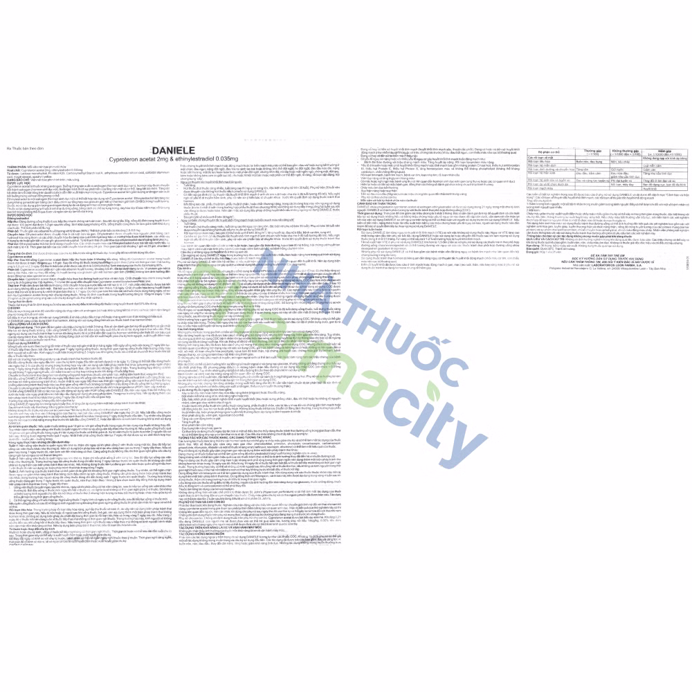 Daniele chứa progesteron cyproteron acetat và estrogen ethinylestradiol và được sử dụng trong 21 ngày trong một chu kỳ kinh nguyệt. Daniele có thành phần tương tự với thuốc tránh thai phối hợp đường uống (COC).