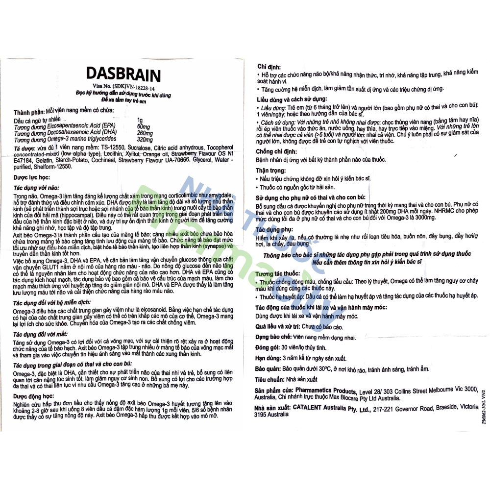 Dasbrain của công ty Pharmametics Products, thành phần chính là dầu cá ngừ tự nhiên, được bào chế ở dạng viên nang mềm. Thuốc này hỗ trợ các chức năng não bộ, khả năng nhận thức, trí nhớ, khả năng tập trung, khả năng kiểm soát hành vi, và tăng cường hệ miễn dịch, làm giảm tần suất và triệu chứng dị ứng.