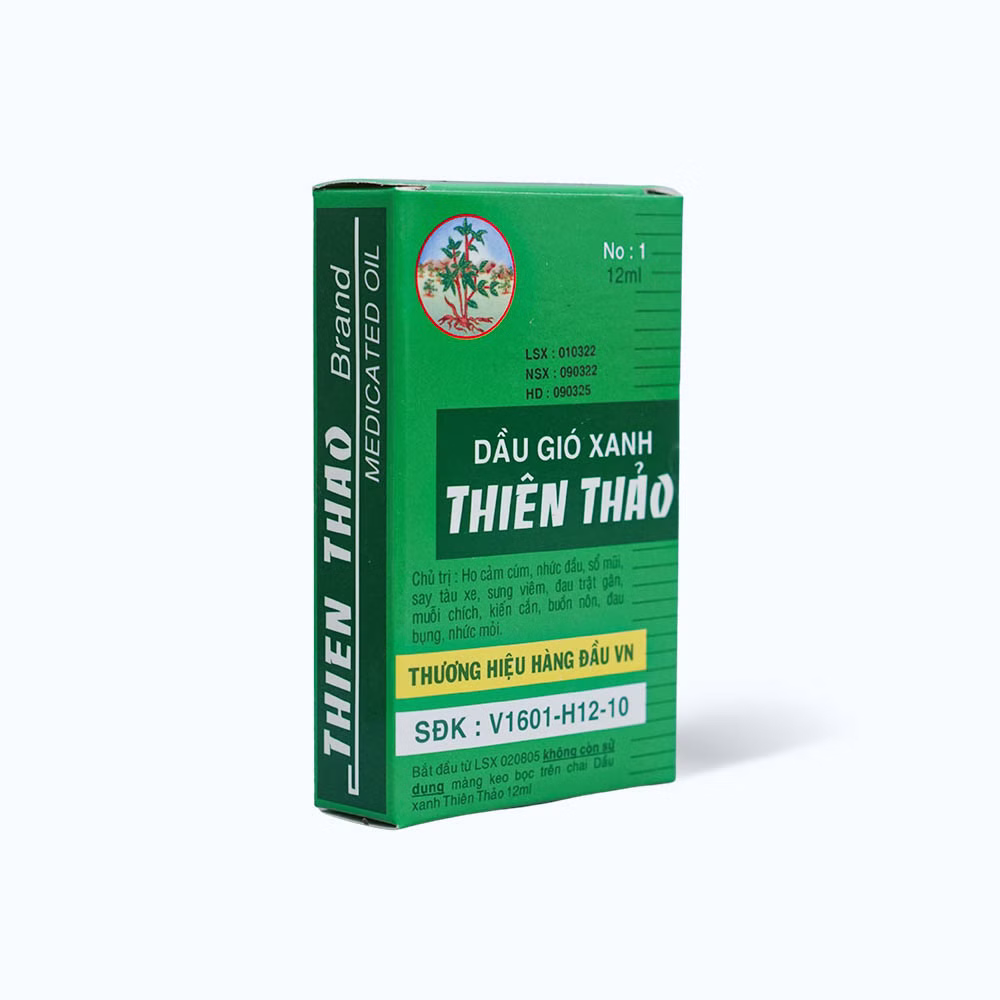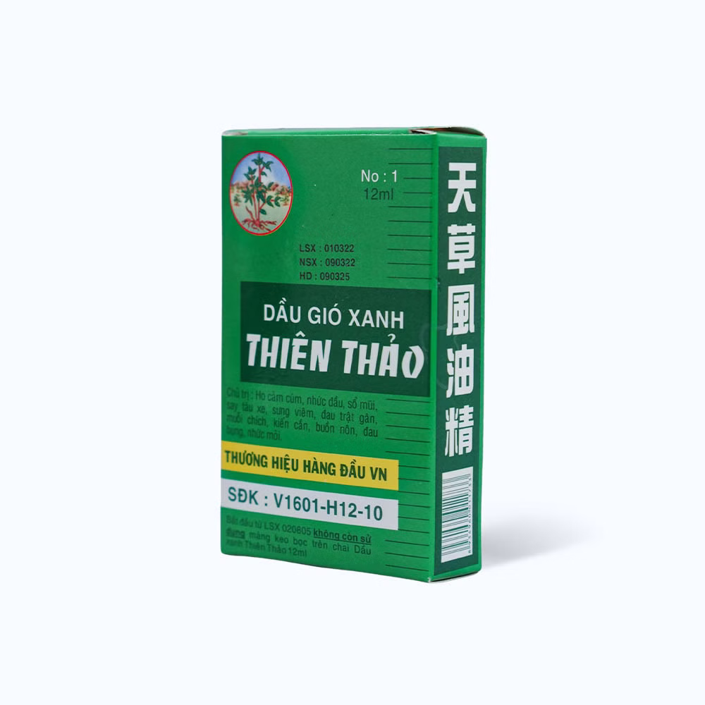 Dầu gió xanh Thiên Thảo là sản phẩm của Công ty Cổ phần Đông Nam Dược Trường Sơn, dùng để chủ trị: Cảm, ho, sổ mũi, nhức đầu, say nắng, trúng gió, say tàu xe, buồn nôn, đau bụng, sưng viêm, nhức mỏi, muỗi chích, kiến cắn, tê thấp tay chân.