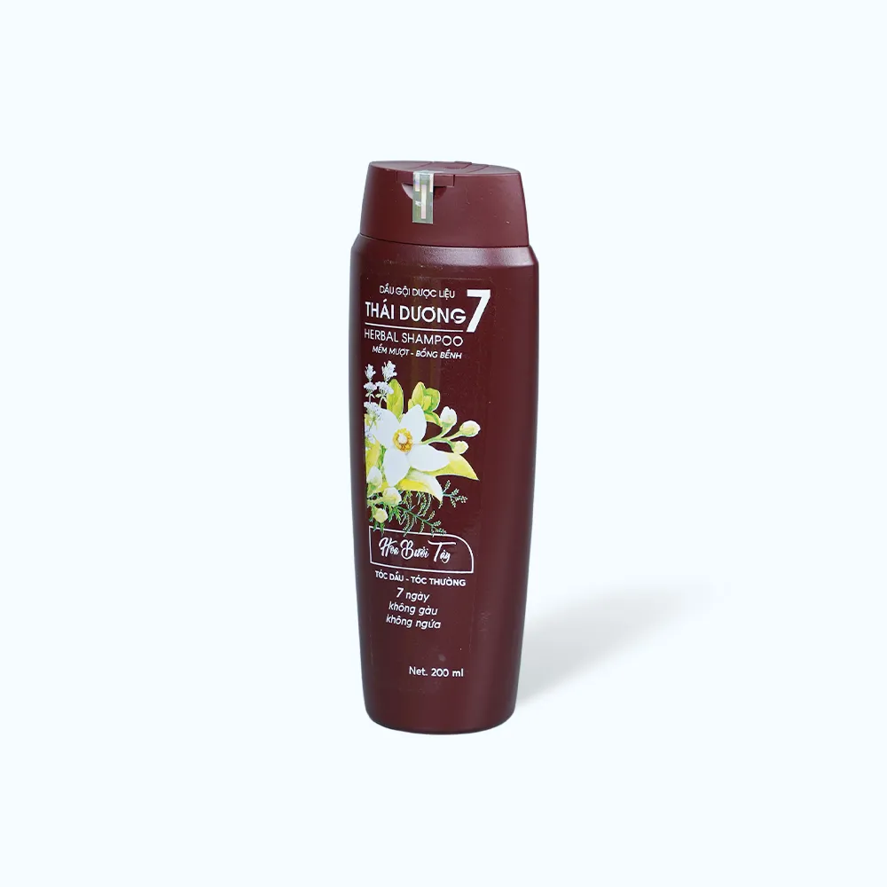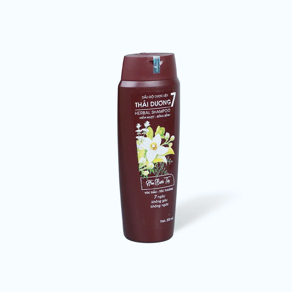 Dầu Gội Dược Liệu THÁI DƯƠNG 7 Dưỡng Tóclà sản phẩm dầu gội chứa các thành phần dược liệu tự nhiên, giúp nuôi dưỡng tóc và da đầu, mang lại mái tóc chắc khỏe và mềm mượt. Sản phẩm được đóng gói trong chai 200ml.