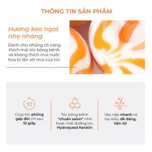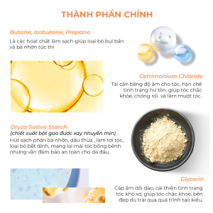- Loại bỏ tức thì bụi bẩn và dầu nhờn bám trên tóc