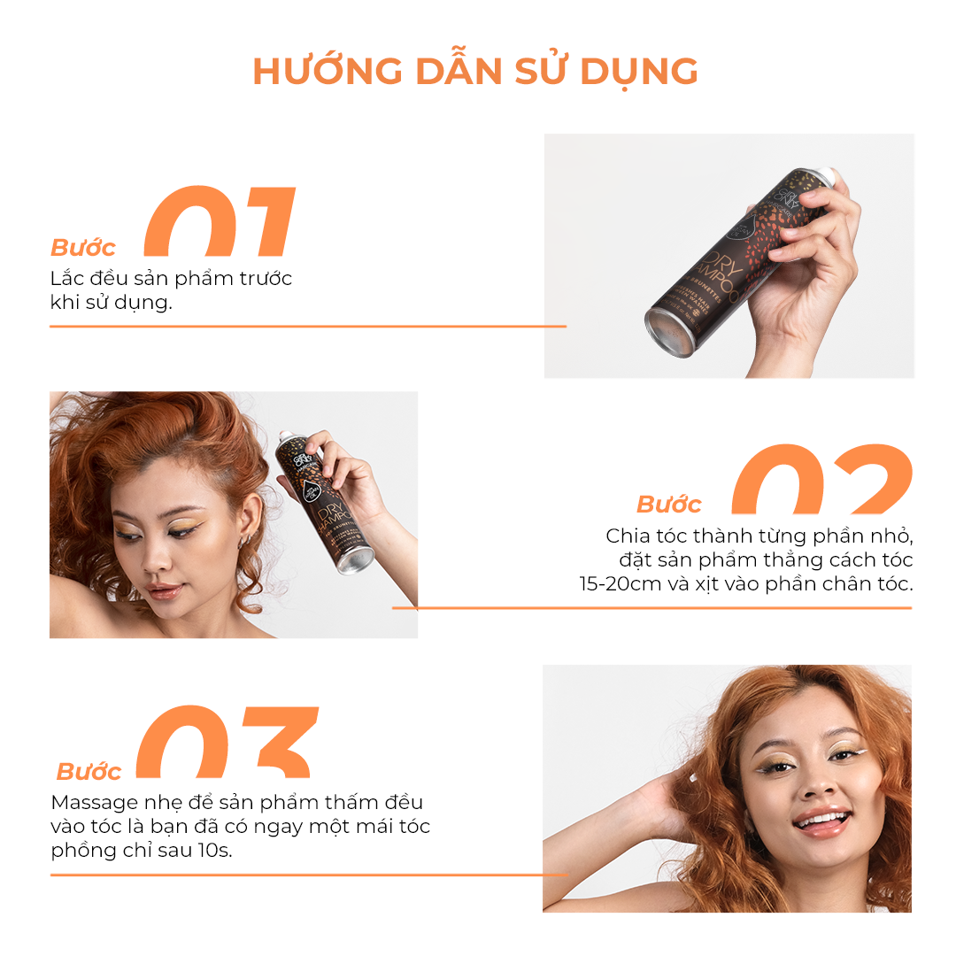 - Bước 3: Massage nhẹ để sản phẩm thấm đều vào tóc là bạn sẽ có ngay một mái tóc phồng chỉ sau 10 giây