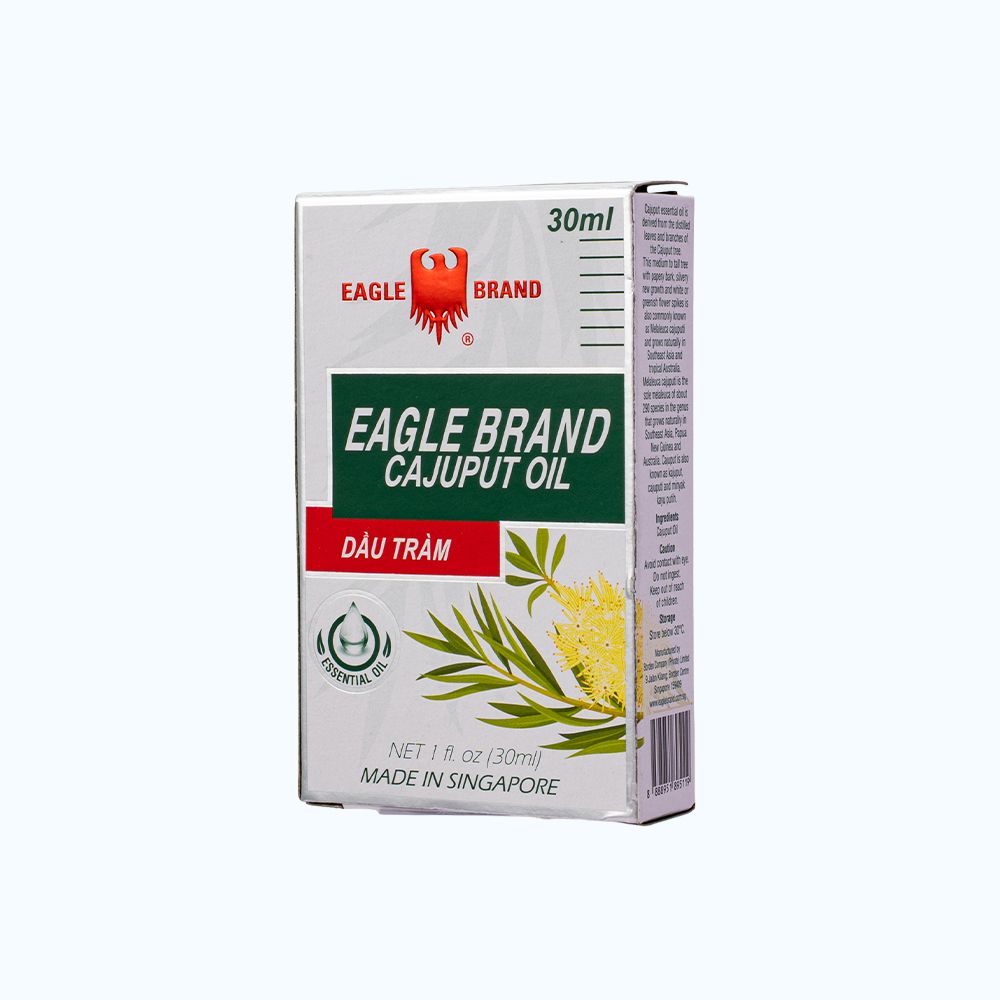 Eagle Brand Cajuput Oil được chiết xuất từ tinh dầu của lá tràm. Có tác dụng giúp làm ấm cơ thể, phòng và hỗ trợ giảm cảm lạnh, cảm cúm, nghẹt mũi. Giảm đau bụng do nhiễm lạnh, chướng bụng, đầy hơi. Làm dịu vết côn trùng cắn.