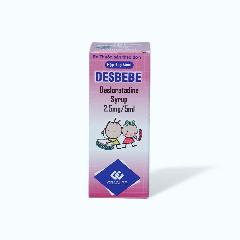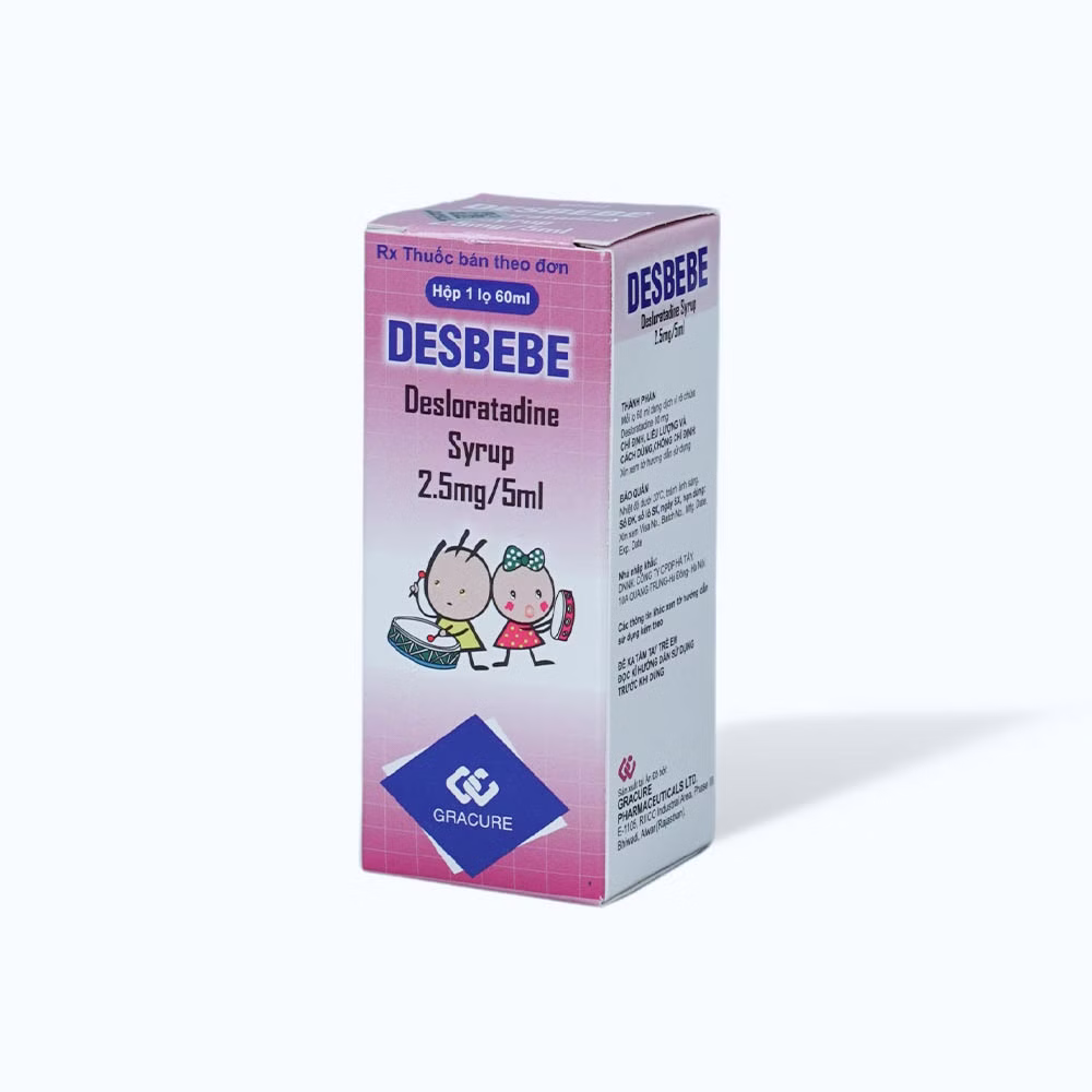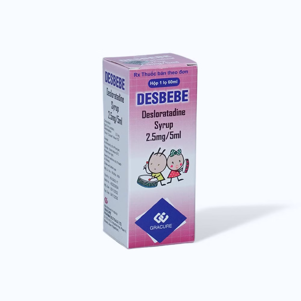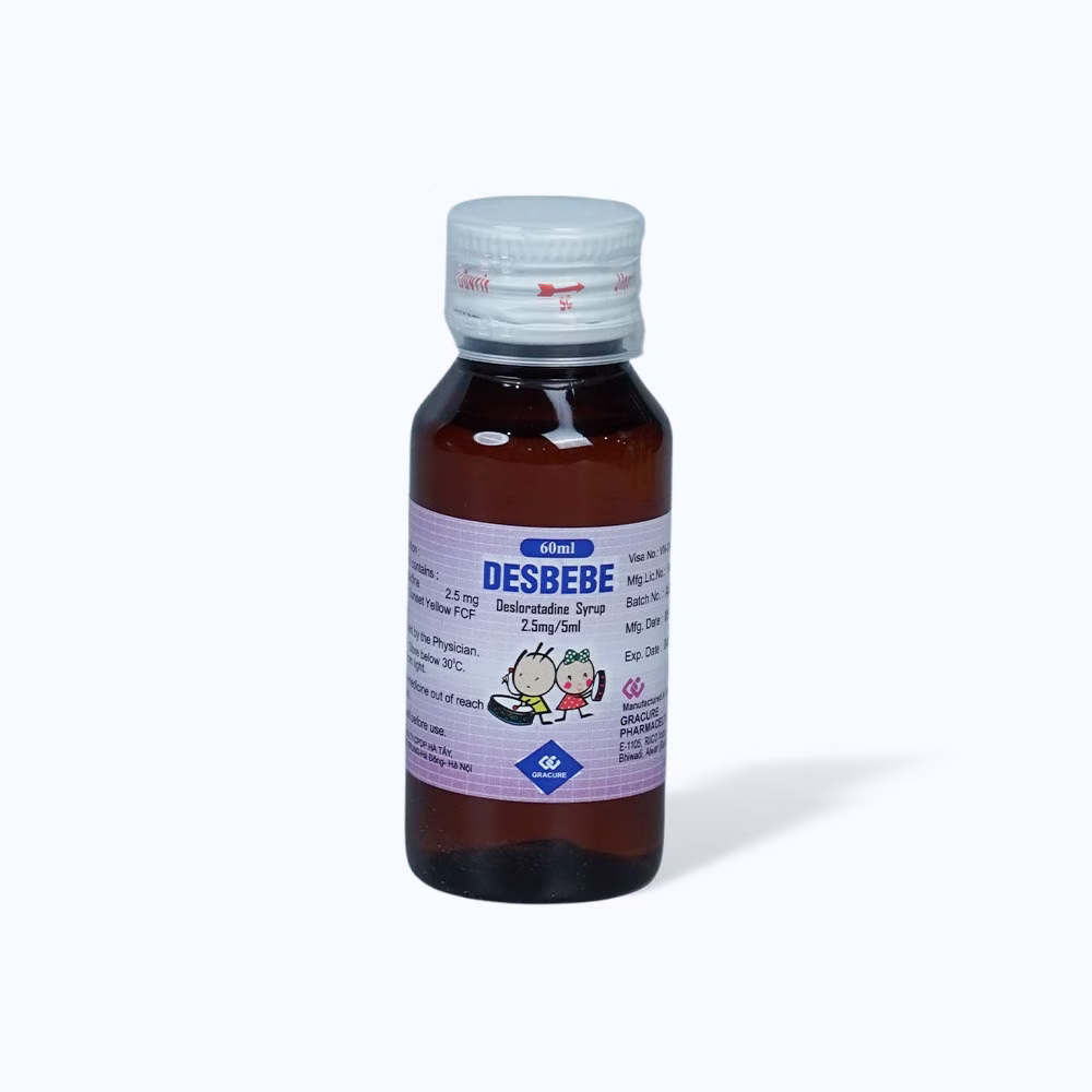 Siro Desbebe 2,5mg/5ml là một loại thuốc chứa hoạt chất Desloratadine, một loại kháng histamin thế hệ hai, được chỉ định để giảm nhanh các triệu chứng liên quan đến viêm mũi dị ứng và mày đay. Siro Desbebe thường được sử dụng cho trẻ em, nhờ dạng bào chế siro dễ uống và hàm lượng phù hợp với liều dùng cho trẻ.