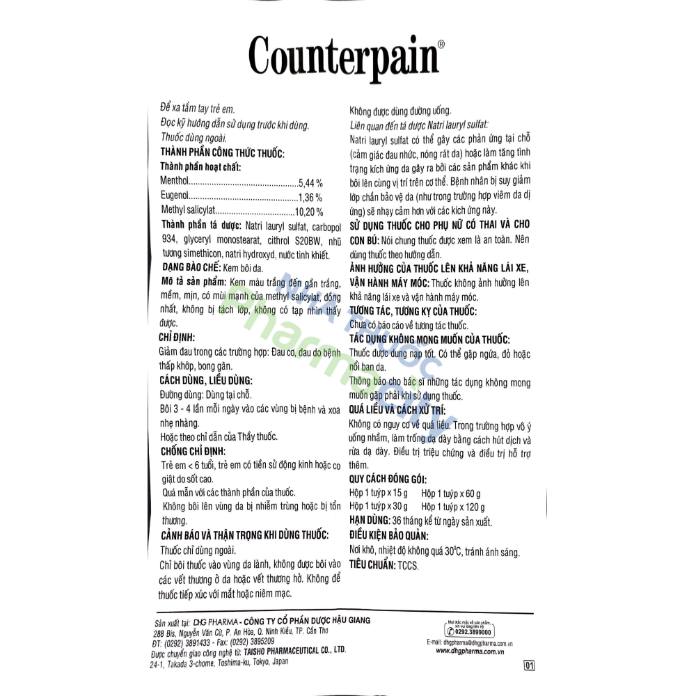 Công dụng thuốc dùng ngoài Counterpain DHG