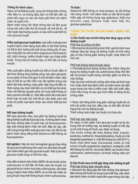 Diamicron MR 60mg có thể được dùng kết hợp với biguanide, thuốc ức chế alpha glucosidase hoặc insulin.