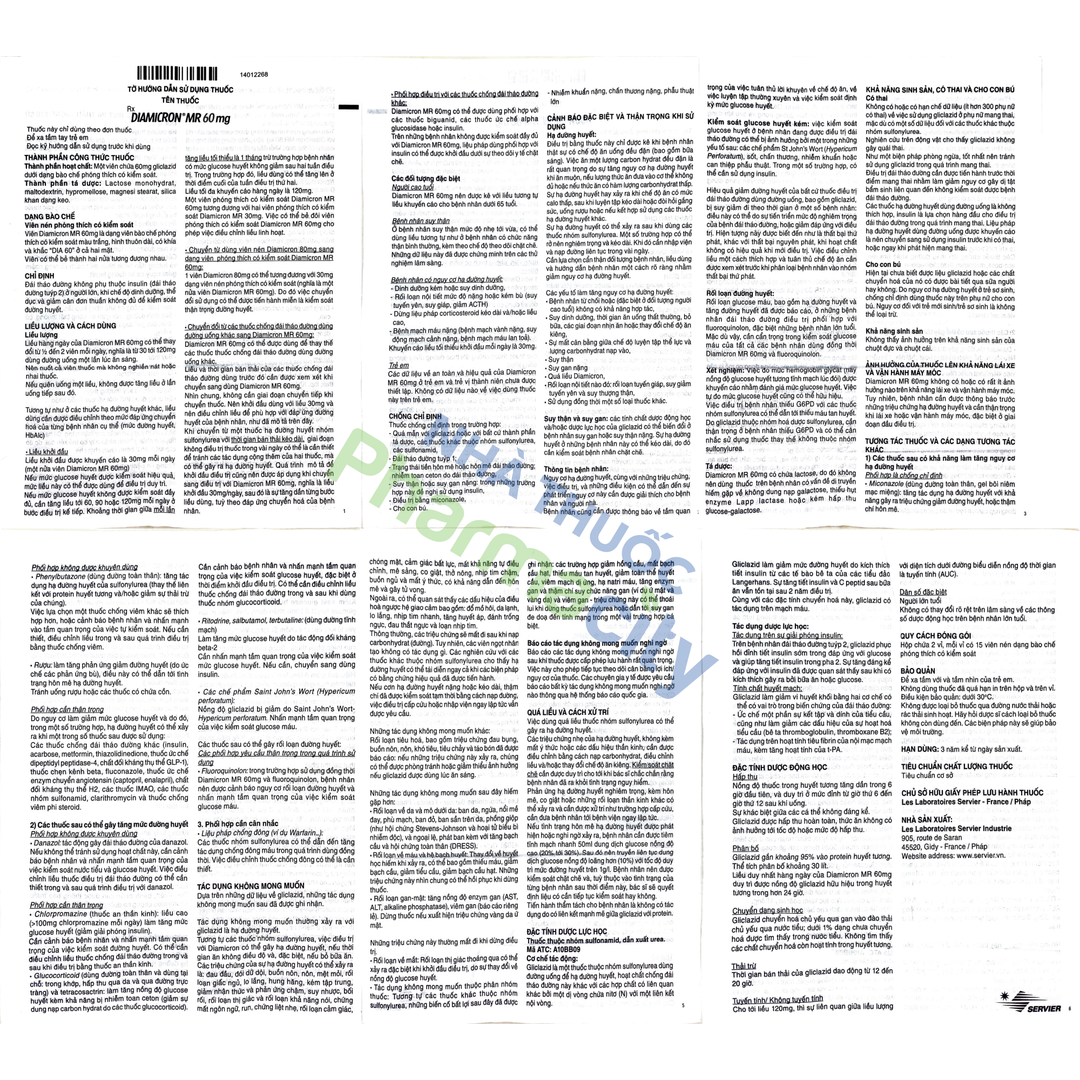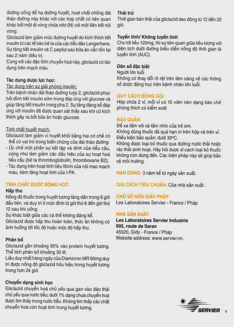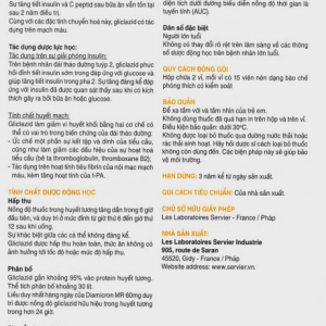 Thuốc Diamicron MR 60mg được sản xuất bởi Les Laboratoires Servier (Pháp), có thành phần chính là Gliclazide. Thuốc dùng để điều trị đái tháo đường không phụ thuộc insulin ở người lớn (đái tháo đường tuýp 2), khi chế độ dinh dưỡng, thể dục và giảm cân đơn thuần không đủ để kiểm soát đường huyết.