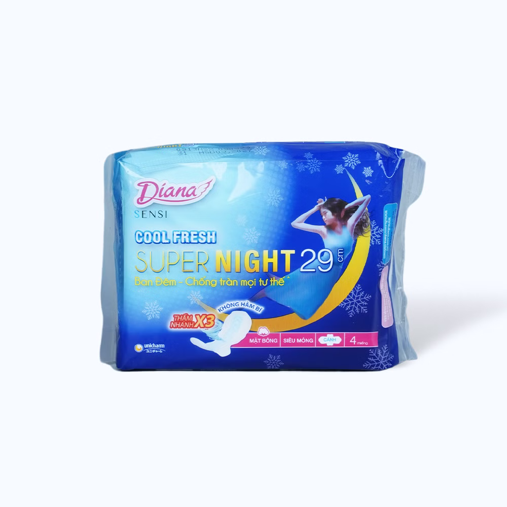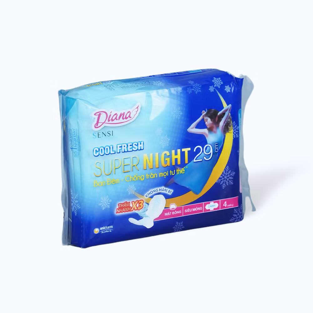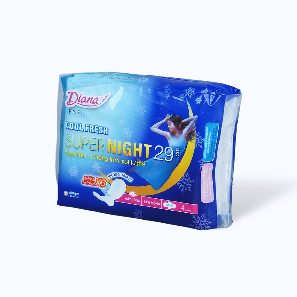 Băng vệ sinh ban đêm có cánh Diana Sensi Cool Night Fresh 29cm (4 Miếng)