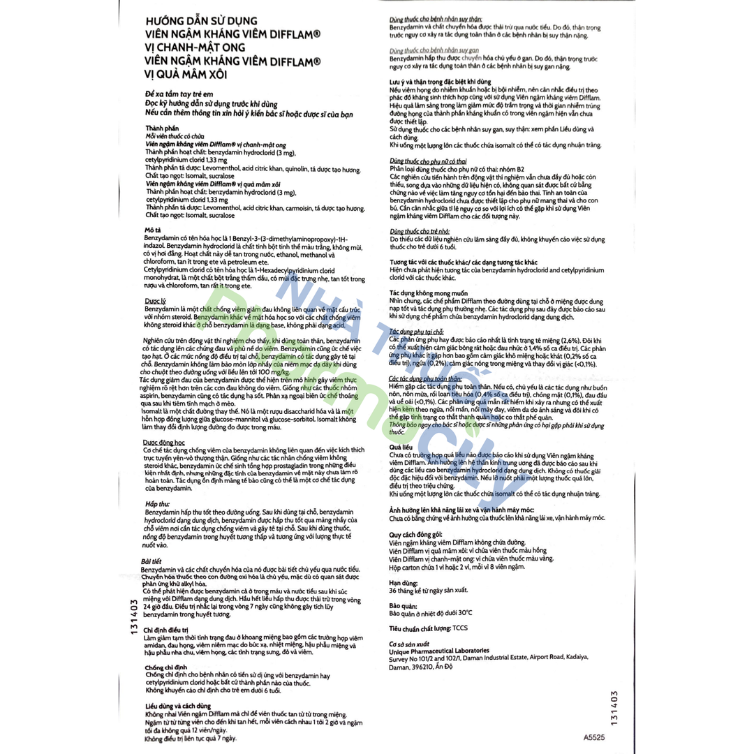 Viên ngậm kháng viêm Difflam vị chanh là gì ?