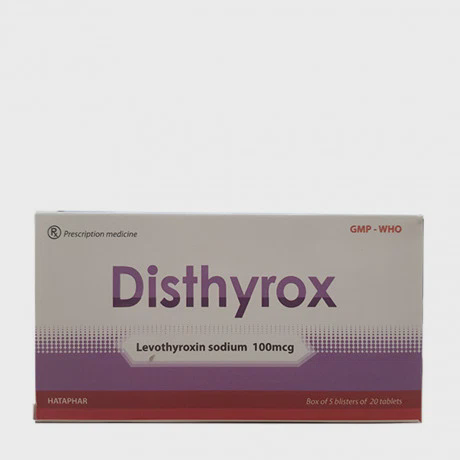 Thuốc Disthyrox là sản phẩm của Công ty Cổ phần Dược phẩm Hà Tây, có thành phần chính là Levothyroxine. Thuốc được chỉ định để điều trị thay thế hoặc bổ sung cho các hội chứng suy giáp do bất cứ nguyên nhân nào ở tất cả các lứa tuổi, tác dụng ức chế tiết thyrotropin (TSH) trong bướu cổ đơn thuần và trong bệnh viêm giáp mạn tính, phối hợp với các thuốc kháng giáp trong nhiễm độc giáp.