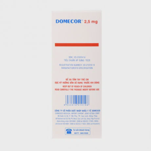 Viên nén Domecor 2.5mgchứa hoạt chất Bisoprolol, một thuốc chẹn beta-adrenergic, được sử dụng để điều trị tăng huyết áp, đau thắt ngực và suy tim. Bisoprolol hoạt động bằng cách làm giảm nhịp tim và giảm sức co bóp của cơ tim, từ đó giảm nhu cầu oxy của tim và hạ huyết áp. Sản phẩm giúp kiểm soát huyết áp hiệu quả, giảm triệu chứng đau thắt ngực và cải thiện chức năng tim ở bệnh nhân suy tim. Viên nén Domecor 2.5mg được đóng gói tiện lợi, dễ sử dụng và bảo quản.