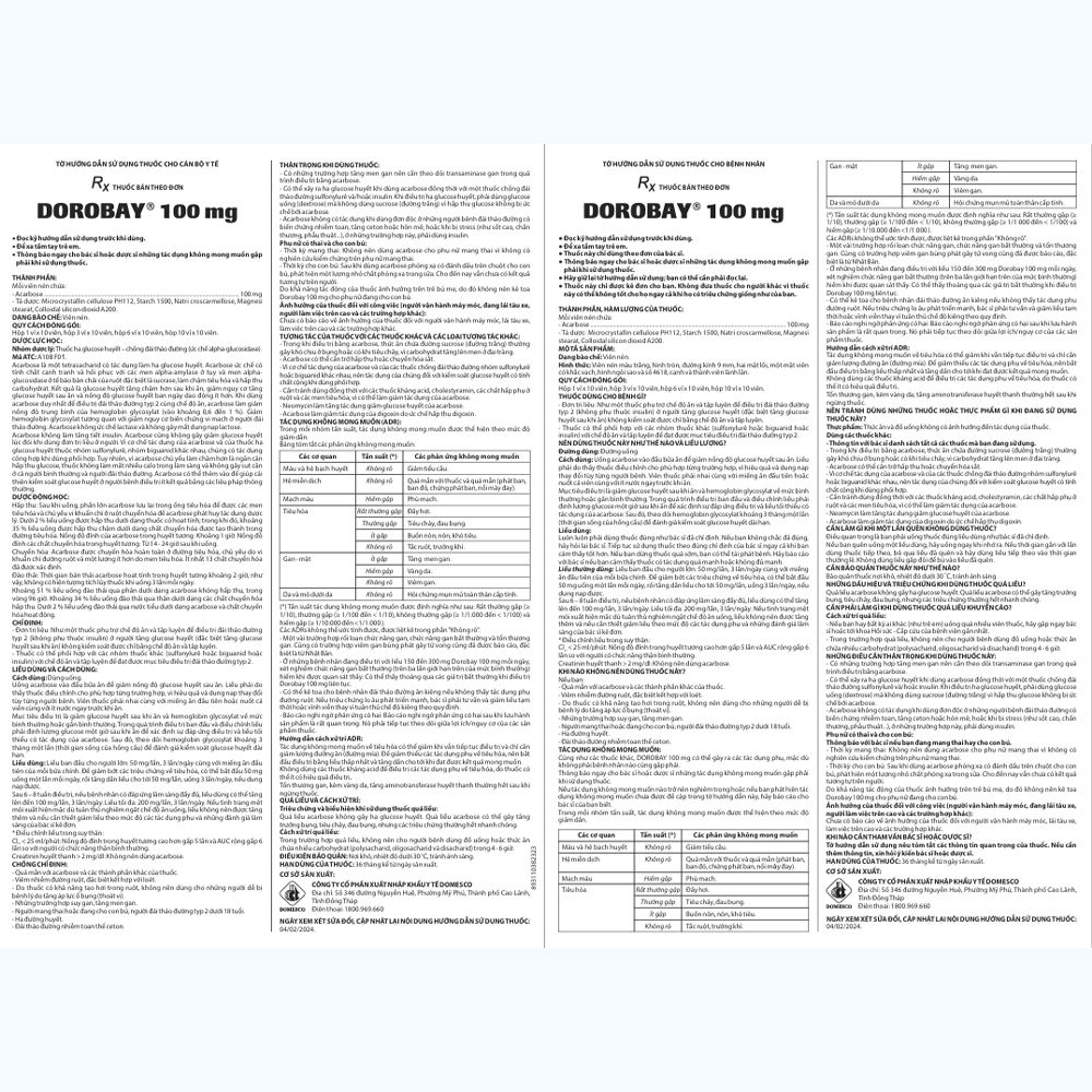 – Acarbose 100mg