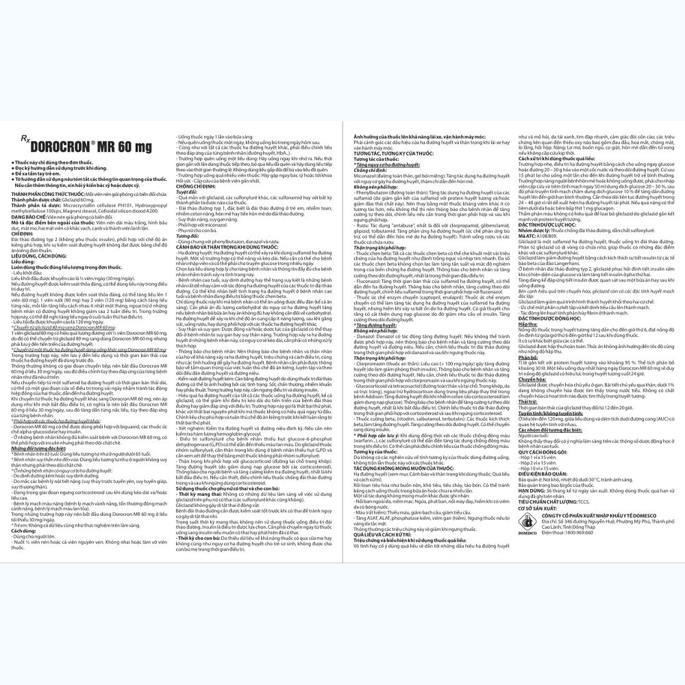 Ở những bệnh nhân không đủ kiểm soát bệnh với Dorocron MR 60 mg, có thể phối hợp với insulin nhưng phải theo dõi chặt chẽ.