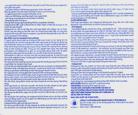 - Ở người bệnh tăng huyết áp không kể đến tuổi, thuốc có tác dụng làm hạ huyết áp tâm thu và tâm trương cả khi nằm ngửa hoặc khi đứng, tác dụng này phụ thuộc liều lượng và có hiệu lực trong 24 giờ. Sự giảm huyết áp đạt được ít nhất một tháng mà không xảy ra quen thuốc nhanh. Khi ngừng thuốc, không thấy có hiện tượng tái diễn. Trong các thử nghiệm lâm sàng, nếu phối hợp perindopril với indapamid sẽ gây tác dụng hiệp đồng tăng mức về giảm huyết áp có liên quan tới từng hiệu lực của mỗi thuốc khi dùng riêng rẽ. Perindopril có hiệu lực với mọi mức độ của tăng huyết áp, từ nhẹ tới trung bình hoặc nghiêm trọng. Có thấy giảm huyết áp tâm thu và tâm trương ở tư thế nằm và cả khi đứng.