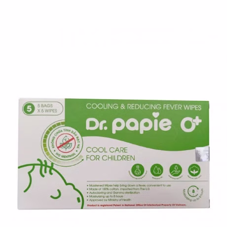 Khăn hạ sốt Dr Papie 0+ (Hộp 5 túi x 5 khăn)