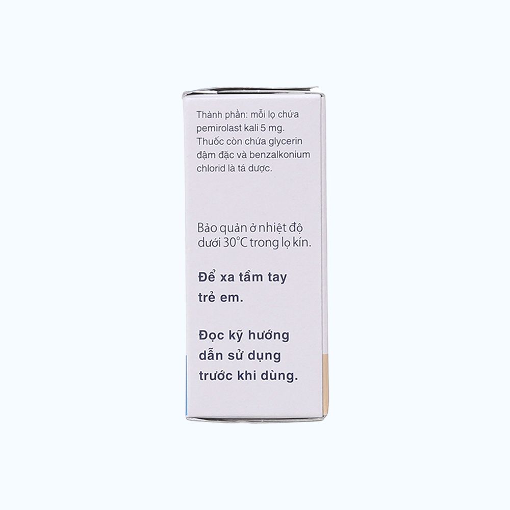 Hiệu quả và độ an toàn của pemirolast dạng nhỏ mắt ở trẻ em dưới 3 tuổi chưa được xác nhận.
