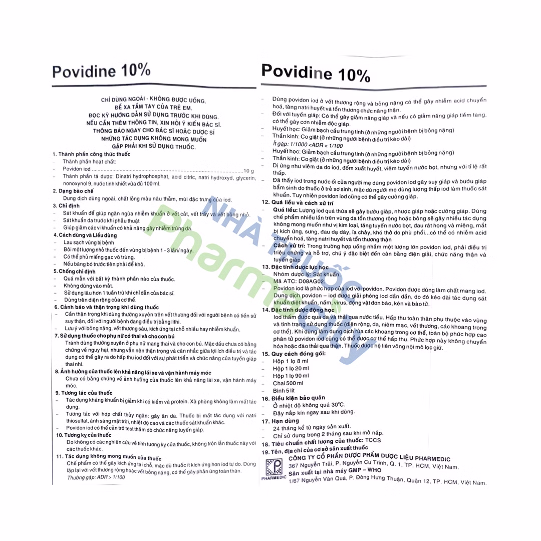 - Dung dịch Povidine 10% dùng ngoài da.