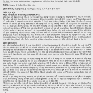 Hoạt chất : Sắt nguyên tố (dưới dạng phức hợp sắt (III) hydroxyd polymaltose) – 50mg.