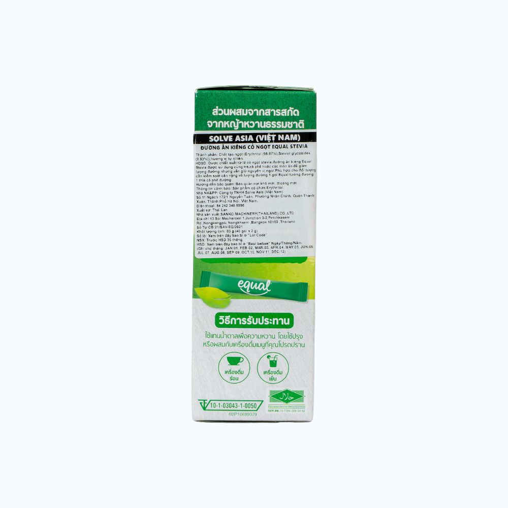 Được chiết xuất từ lá cỏ ngọt stevia, đường ăn kiêng Equal Stevia được sử dụng cùng trà, cà phê, hoặc các món ăn để giảm lượng đường nhưng vẫn giữ nguyên vị ngọt tự nhiên. Phù hợp cho đối tượng cần kiểm soát cân nặng và lượng đường. 1 gói Equal tương đương 1 thìa cà phê đường.