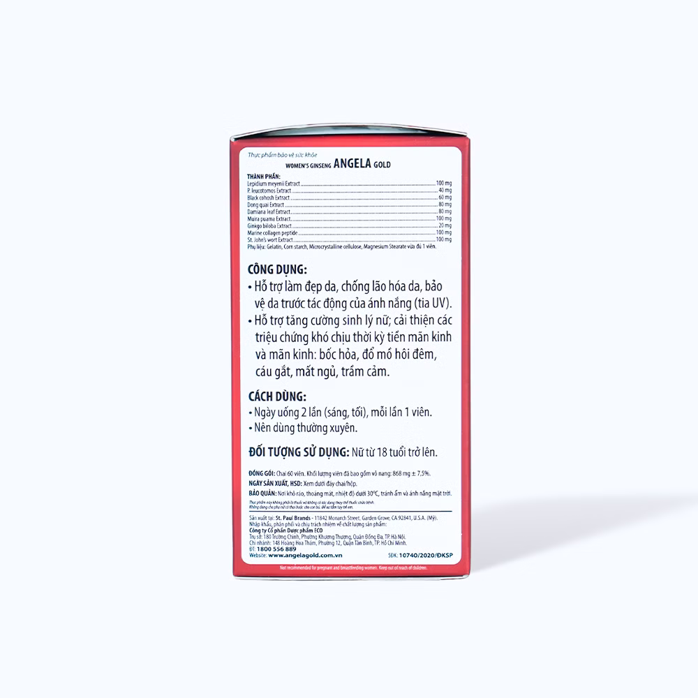 Lepidium meyenii: Đây là một loại thảo mộc có giá trị mọc ở độ cao hơn 4.000 mét so với mực nước biển ở dãy núi Andes ở Nam Mỹ. Các hoạt chất của Lepidium Meyenii, đặc biệt là sterol có tác dụng cải thiện hoạt động của trục Não – Tuyến yên – Buồng trứng, giúp sản sinh và phối hợp các hormone như estrogen, progesterone và testosterone để phục vụ các hoạt động sống. Từ đó giúp phụ nữ nâng cao sức khỏe, duy trì sắc đẹp, cải thiện các triệu chứng tiền mãn kinh, mãn kinh.