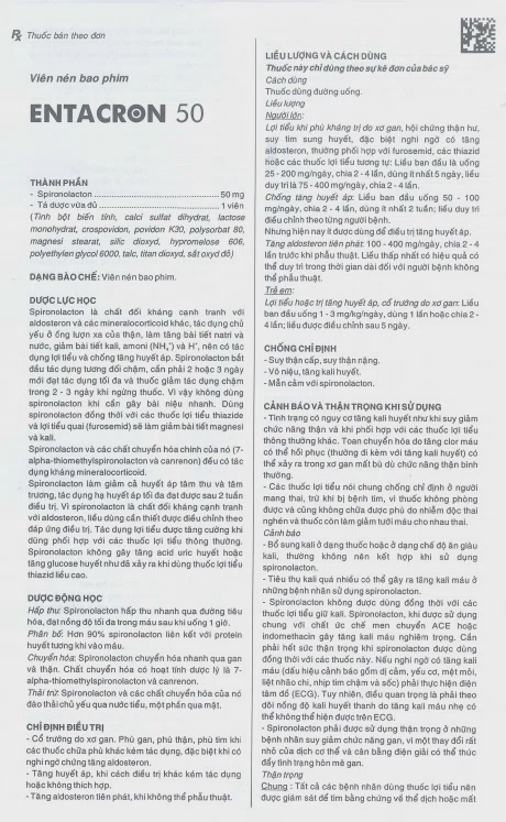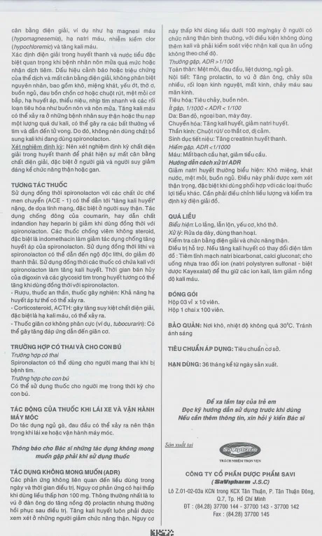 -Lợi tiểu khi phù kháng trị do xơ gan, hội chứng thận hư, suy tim sung huyết, đặc biệt nghi ngờ có tăng Aldosteron thường phối hợp với Furosemid, các Thiazid hoặc các thuốc lợi tiểu tương tự: Liều ban đầu là uống 25- 200mg/ngày, chia 2 – 4 lần, dùng ít nhất 5 ngày, liều duy trì là 75 – 400mg/ngày, chia 2 – 4 lần.
