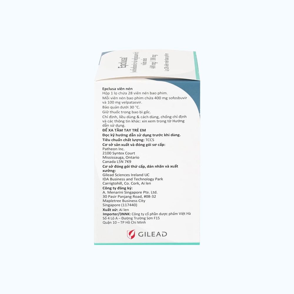 Tỷ lệ bệnh nhân dừng điều trị do phản ứng có hại là 0,2% và tỷ lệ bệnh nhân có phản ứng có hại nghiêm trọng là 3,2% đối với những bệnh nhân dùng Epclusa trong 12 tuần. Trong các nghiên cứu lâm sàng, nhức đầu, mệt mỏi và buồn nôn là các phản ứng có hại phổ biến nhất xuất hiện trong khi điều trị (tỷ lệ mắc phải ≥ 10%) được báo cáo ở những bệnh nhân được điều trị trong 12 tuần với Epclusa. Những phản ứng có hại này và những phản ứng có hại khác được báo cáo với tần suất tương tự ở các bệnh nhân điều trị bằng giả dược so với bệnh nhân được điều trị bằng Epclusa.