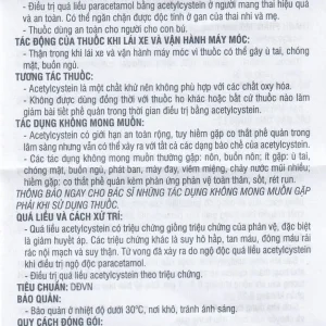 Điều trị quá liều paracetamol bằng acetylcystein ở người mang thai hiệu quả và an toàn. Có thể ngăn chặn được độc tính ở gan của thai nhi và mẹ.