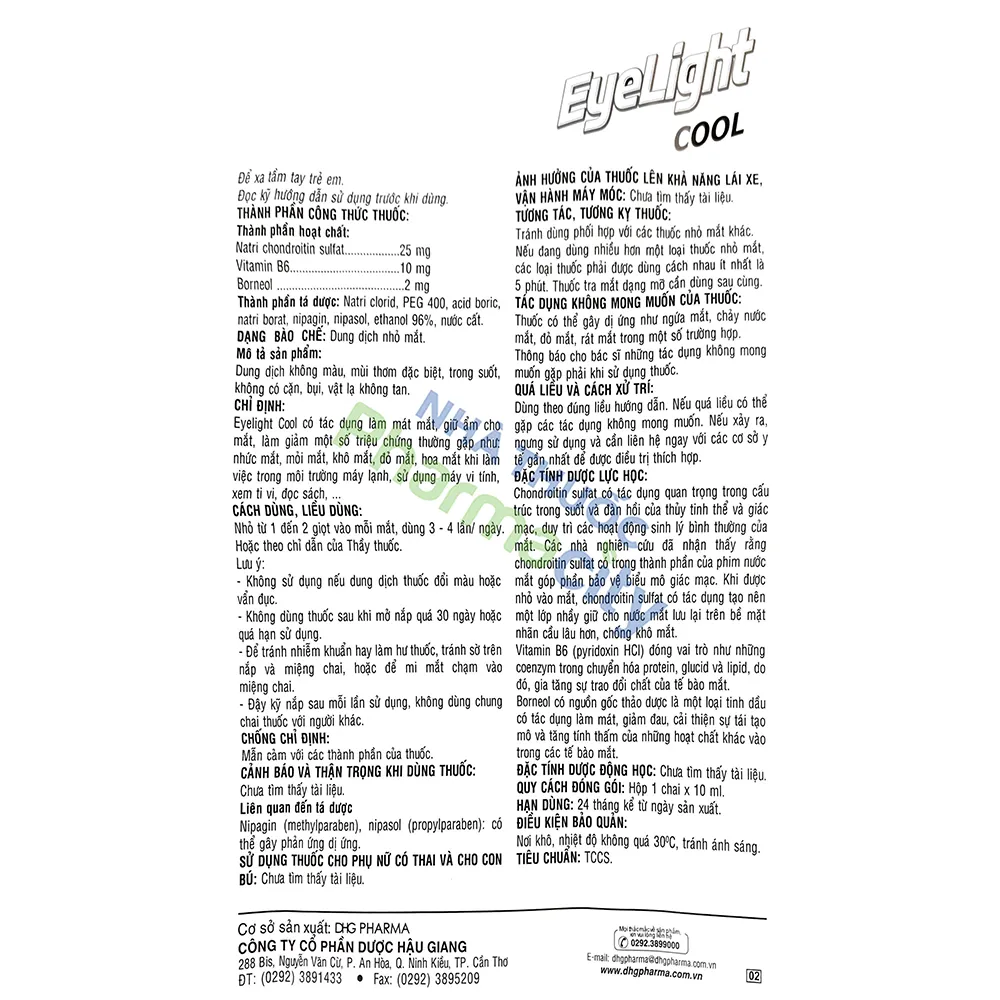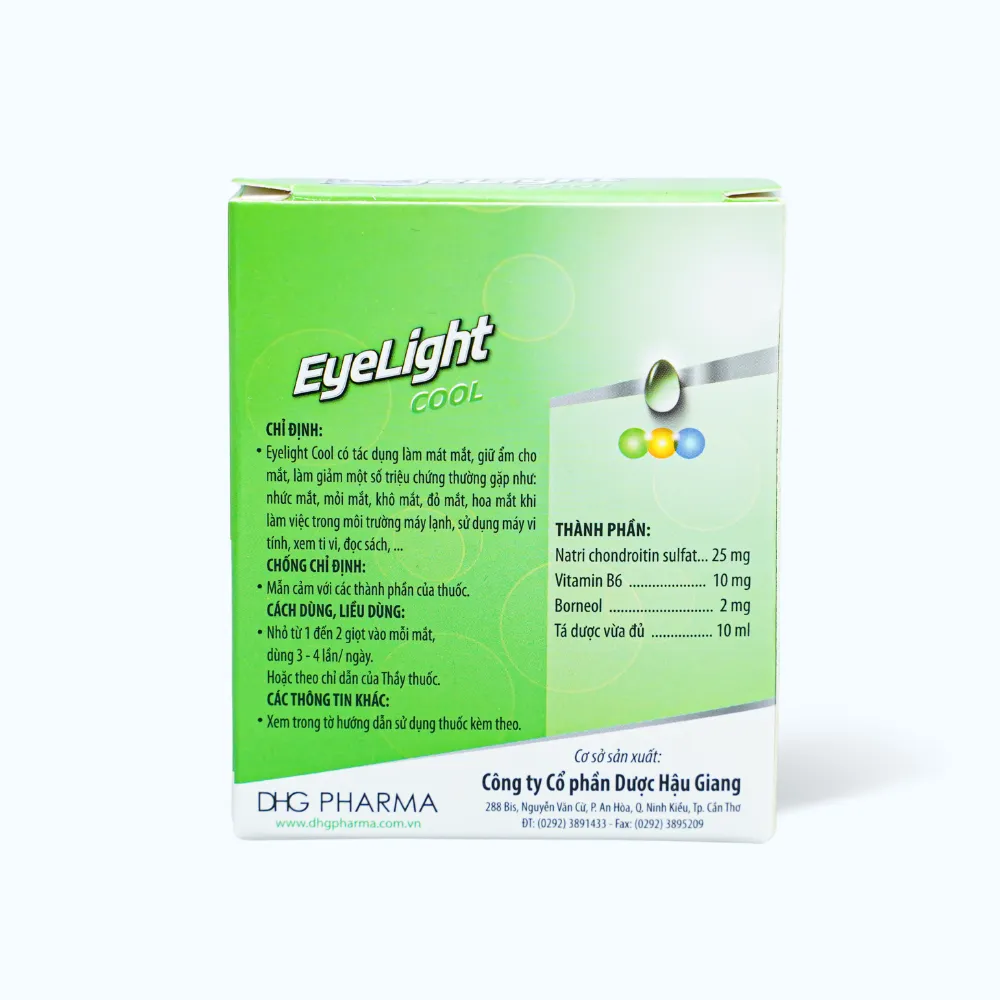 Thuốc nhỏ mắt Eyelight Cool là một sản phẩm được sản xuất bởi DHG Pharma, dành cho việc làm mát và giữ ẩm cho mắt, đồng thời ngăn ngừa sự tiến triển của cận thị.