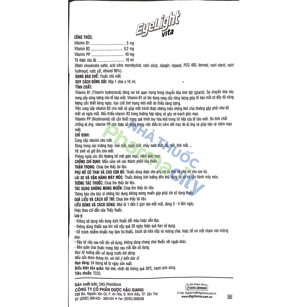 Đóng gói: Hộp 1 chai x 10 ml.