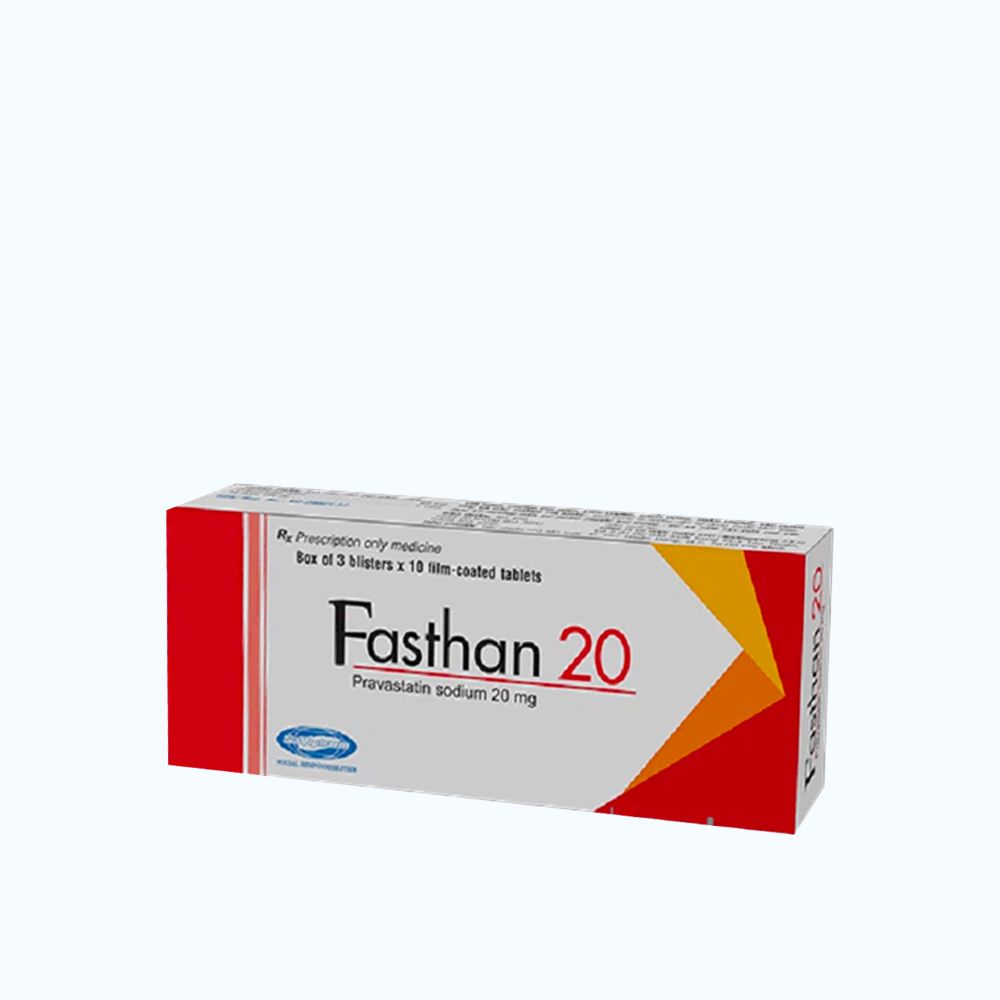 Thuốc kháng sinh (erythromycin, clarithromycin…). Thuốc điều trị HIV và viêm gan siêu vi C như darunavir + ritonavir, lopinavir + ritonavir. Nếu người bệnh đang sử dụng thuốc hạ lipid máu như resin (colestyramin hay colestipol), thì nên uống pravastatin ít nhất 1 giờ trước và 4 giờ sau khi uống resin. Bởi vì resin làm ảnh hưởng đến sự hấp thu của pravastatin nếu uống 2 thuốc này quá gần nhau. Không nên uống rượu khi đang dùng Fasthan 20.