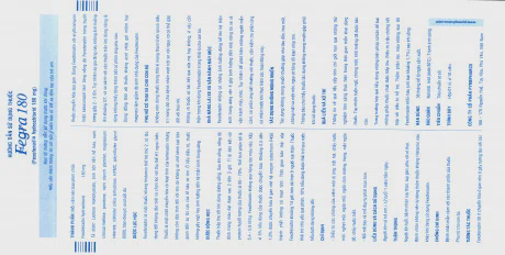 - Hoạt chất: Fexofenadin hydrochloric 180mg