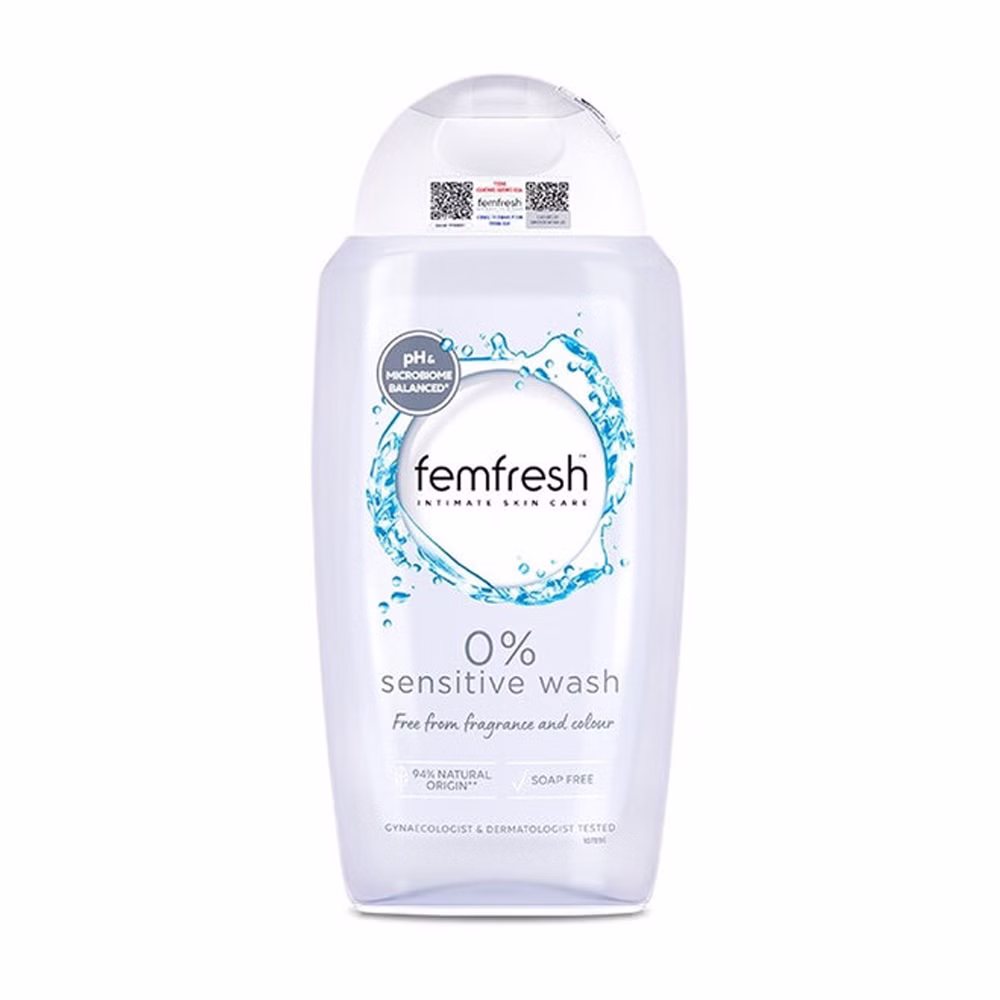 - Dung dịch vệ sinh phụ nữ Femfresh 0% là sản phẩm chuyên biệt dành cho phụ nữ có làn da nhạy cảm. Được thiết kế để làm sạch nhẹ nhàng và bảo vệ vùng kín mà không gây kích ứng. Sản phẩm này không chứa paraben, xà phòng và chất tạo màu, phù hợp cho làn da nhạy cảm nhất.