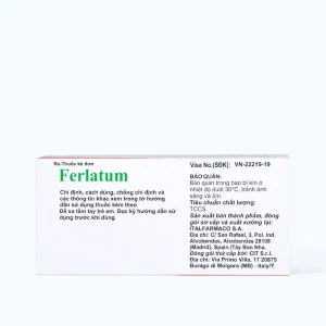 - Thai kỳ: Không có cảnh báo đặc biệt nào đối với phụ nữ mang thai và cho con bú. Trên thực tế Ferlatum được chỉ định điều trị tình trạng thiếu sắt có thể xảy ra đối với những trường hợp này.