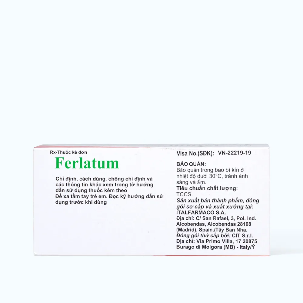 - Chế phẩm Ferlatum có chứa sorbitol, do đó không sử dụng thuốc cho bệnh nhân không dung nạp fructose do di truyền.