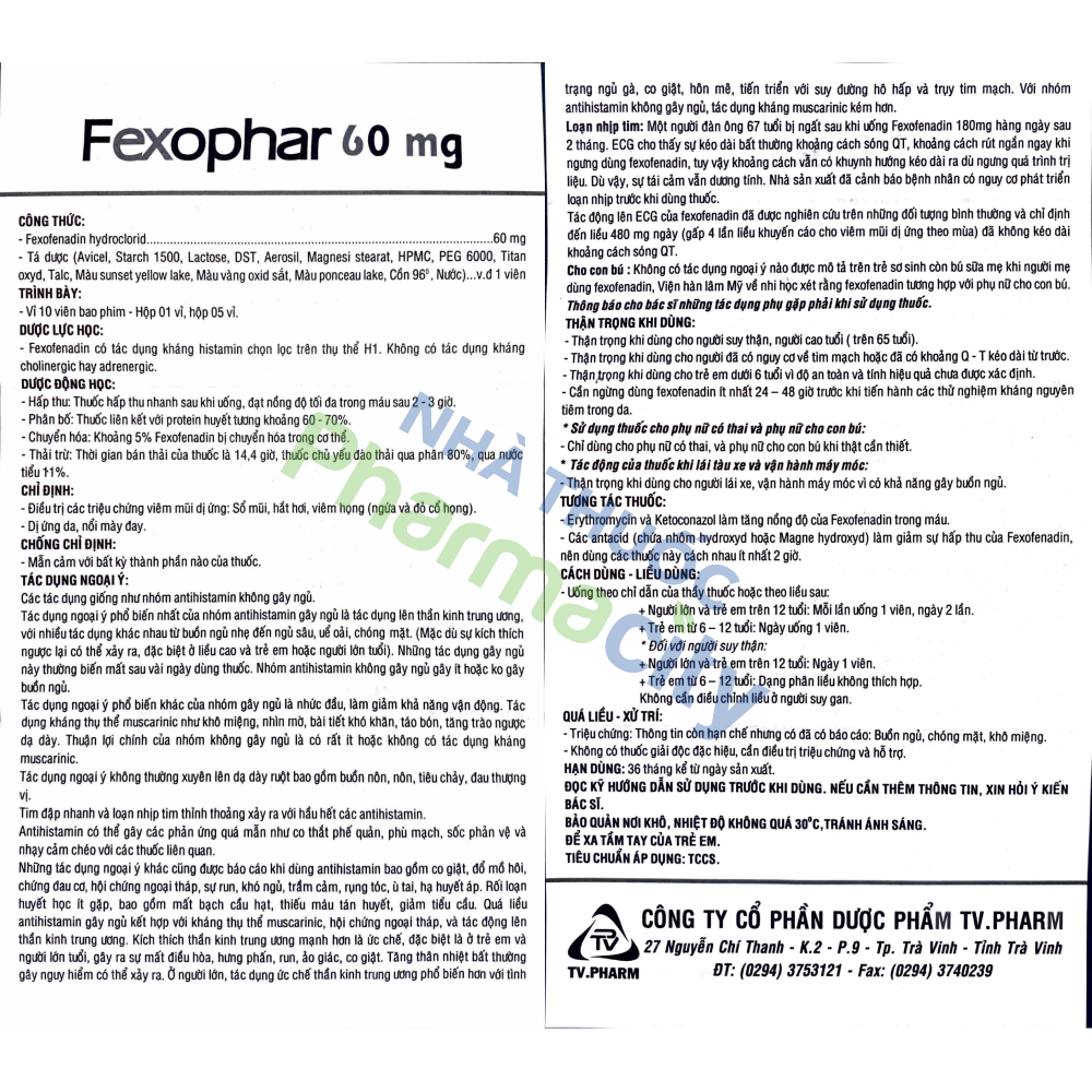Chuyển hóa: Khoảng 5% Fexofenadine bị chuyển hóa trong cơ thể.