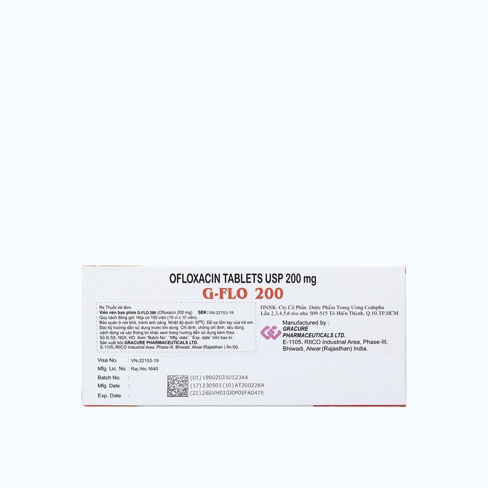 - Đợt nhiễm khuẩn cấp của viêm phế quản mạn tính: Do kháng sinh fluoroquinolon, trong đó có G-FLO 200 liên quan đến phản ứng có hại nghiêm trọng (xem mục Cảnh báo và thận trọng) và đợt nhiễm khuẩn cấp của viêm phế quản mạn tính ở một số bệnh nhân có thể tự khỏi, chỉ nên sử dụng G-FLO 200 cho những bệnh nhân không có lựa chọn điều trị khác thay thế.