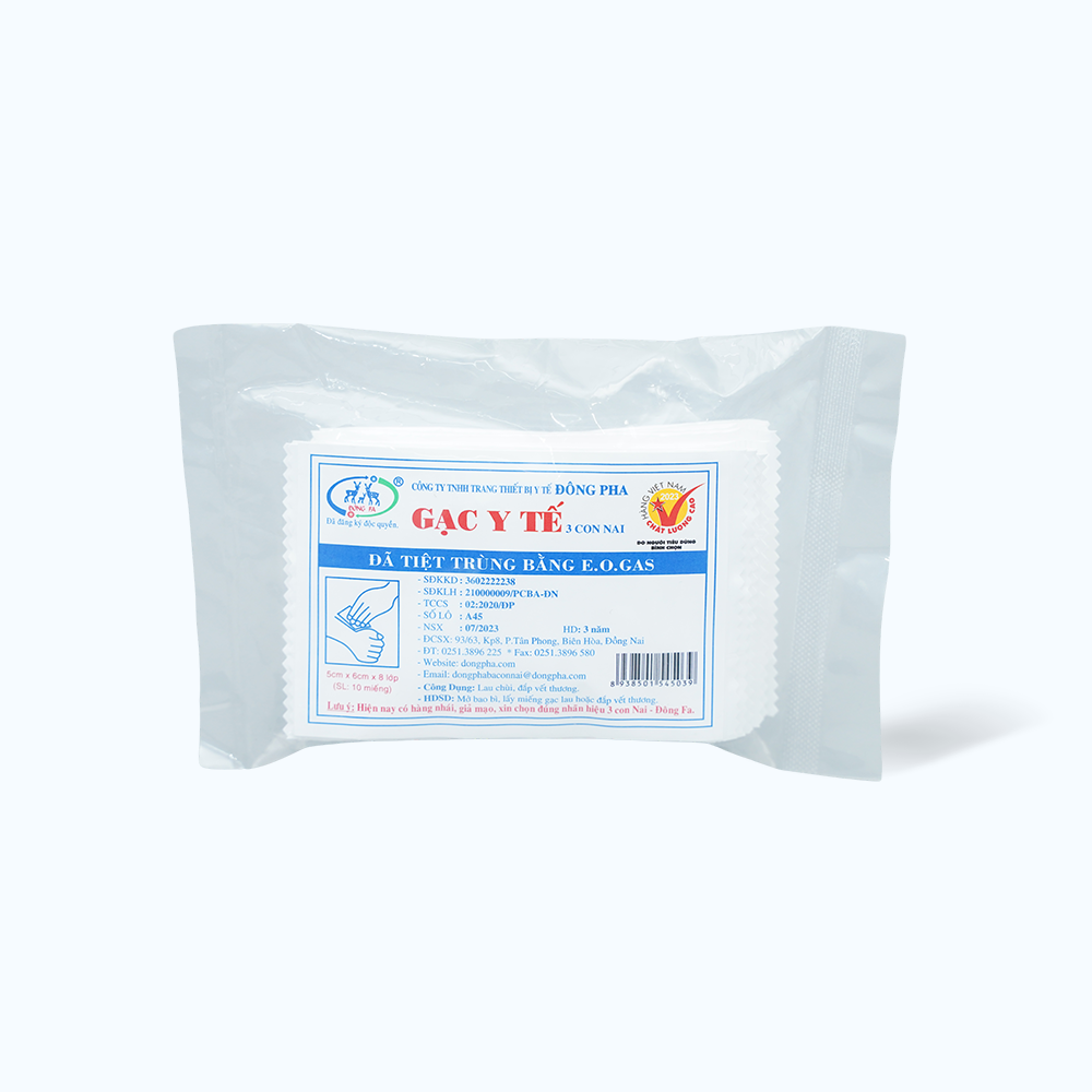 Gạc y tế tiệt trùng Đông Pha được làm từ 100% sợi cotton tự nhiên, khả năng thấm hút cao và nhanh, mịn màng, mềm mại, không gây kích ứng da.